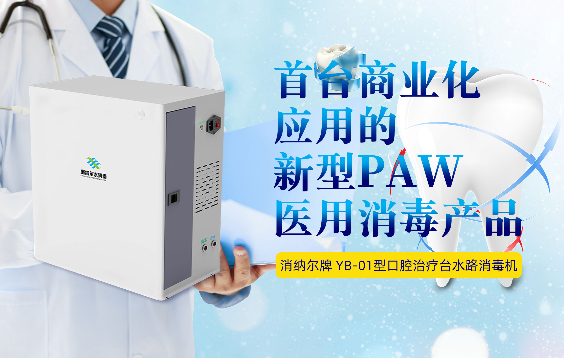 首臺(tái)商業(yè)化應(yīng)用的新型 PAW 醫(yī)用消毒產(chǎn)品,消納爾牌口腔治療臺(tái)水路消毒機(jī)